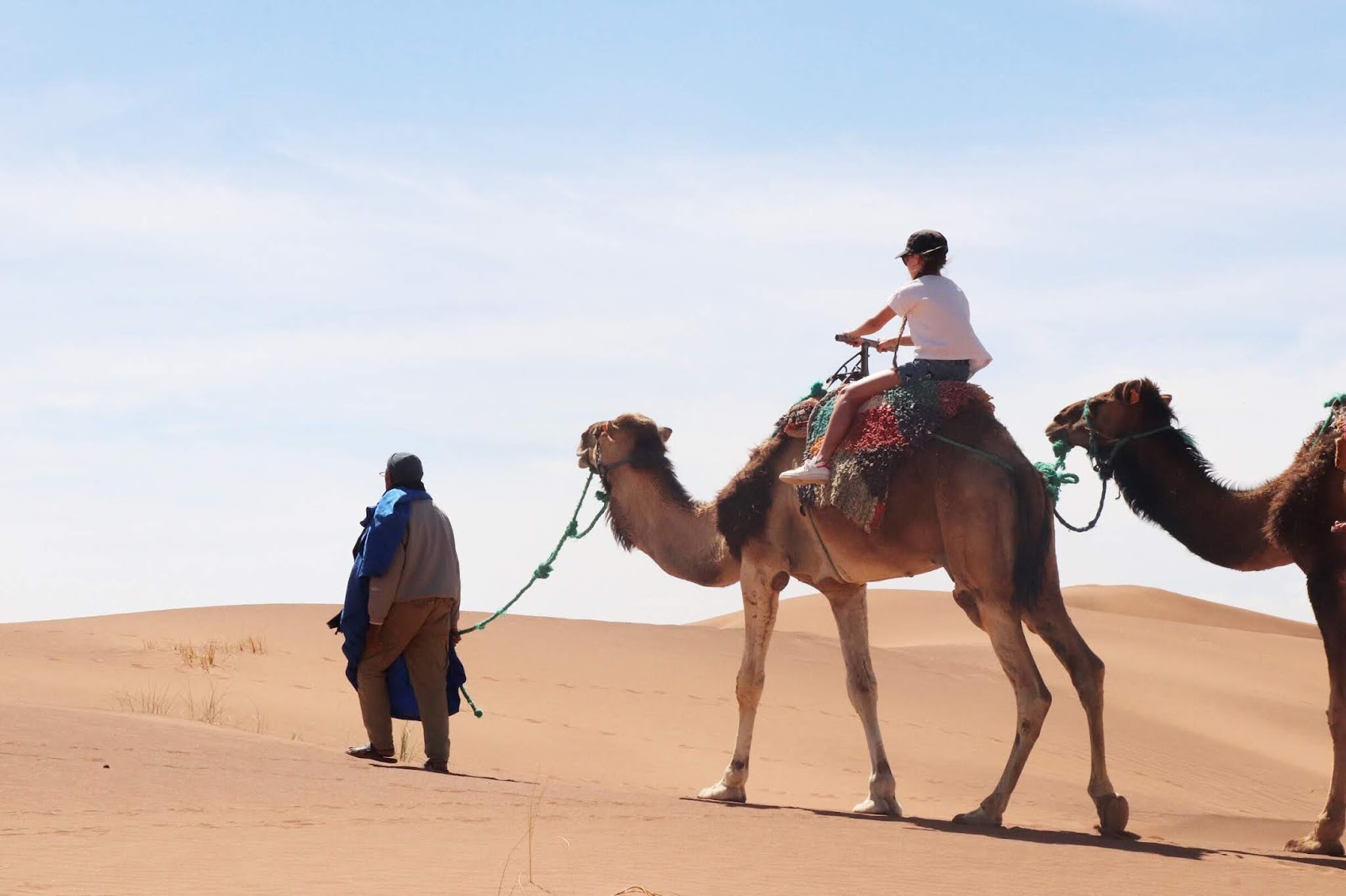 Dans le désert justement, près des tentes de touaregs, nous avons emprunté des chameaux pour un treck dans les dunes. Souvenir gravé pour mes enfants de la ville et l'océan.